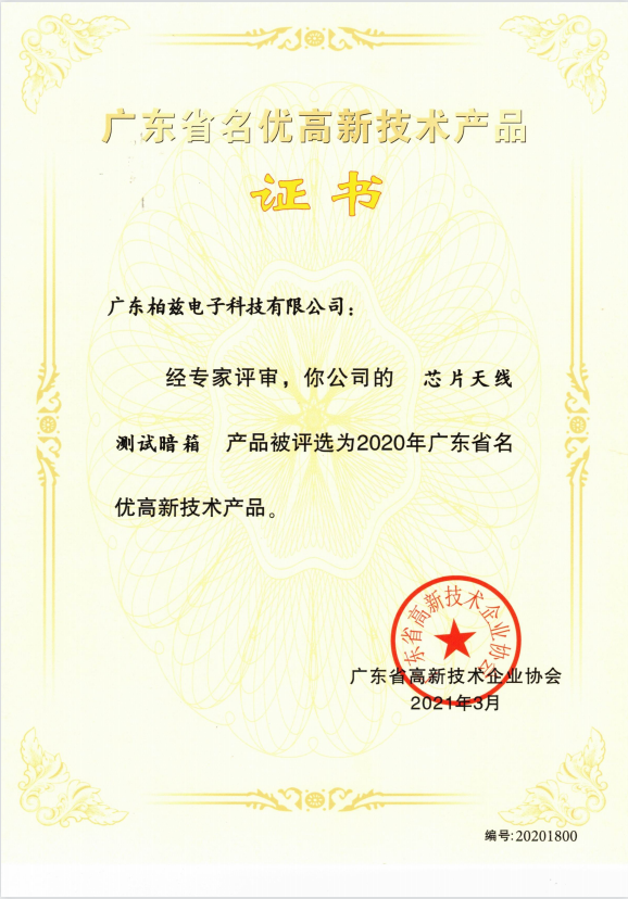 近日,公司获得两项含金量很高的认定证书,分别是:广东省高新技术企业认定证书,广东省高新技术产品认定证书(芯片天线测试暗箱)。公司自成立以来,一直致力于天线测试设备及材料测试设备的研究,目前已经为国内多家研究所、高校及企业提供了多套设备,长期战略合作单位有:中国电科集团有限公司第41研究所(中国电科仪器仪表股份有限公司)、华为技术有限公司等。